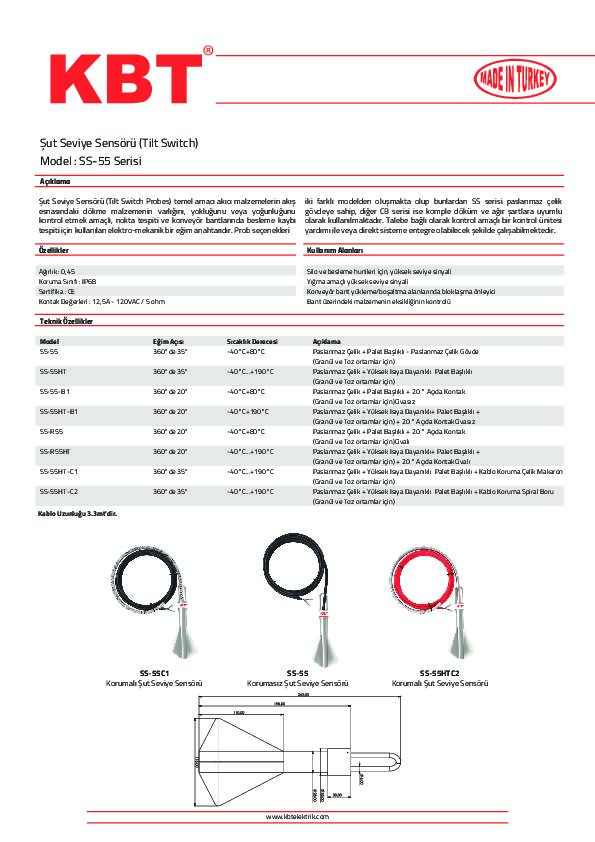 | SS-55HT-C2 | 360° de 35° | -40°C...+190°C | Paslanmaz Çelik + Yüksek Isıya Dayanıklı Palet Başlıklı + Kablo Koruma Spiral Boru (Granül ve Toz ortamlar için) |